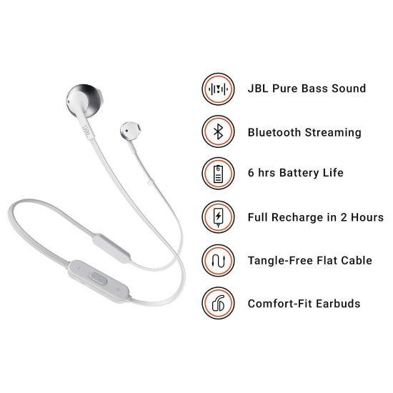 JBL Tune 205BT by Harman Wireless Earbud Headphone Information