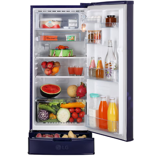 LG 185L, 3 Star, With Base Stand Drawer, Blue Euphoria Finish, Direct Cool Single Door Refrigerator
