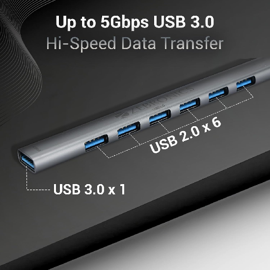 - [Multiport adapter]: The ZEB-700HB multiport adapter is equipped with both USB 3.0 and USB 2.0 ports offering flexibility and convenience. One USB 3.0 port is for high-speed data transfer rates, while the 6 x USB 2.0 ports cater to a variety of peripherals and accessories with multiple USB ports, it handles the usage of different devices simultaneously.