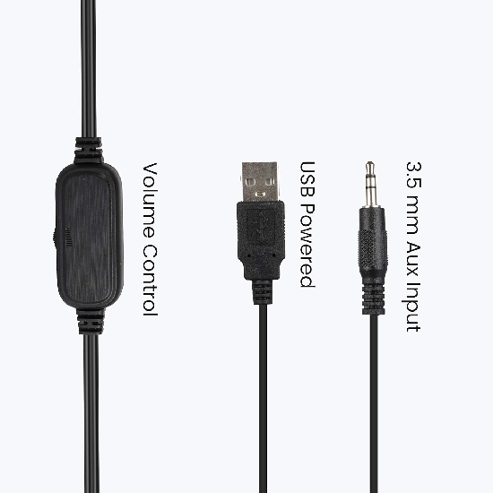 - Connects with Laptop, Desktop PC - 3.5mm AUX Input. Frequency response:150Hz- 20kHz, Driver size 52mm x 2