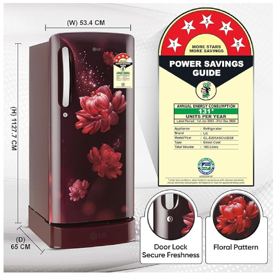 LG 185 L, 5 Star, Smart Inverter, Direct-Cool Single Door Refrigerator