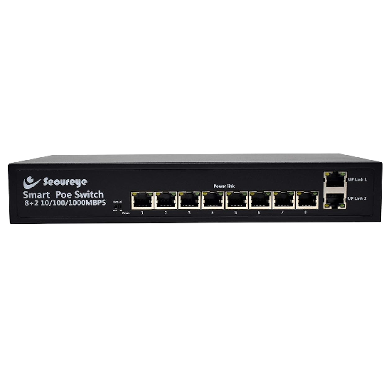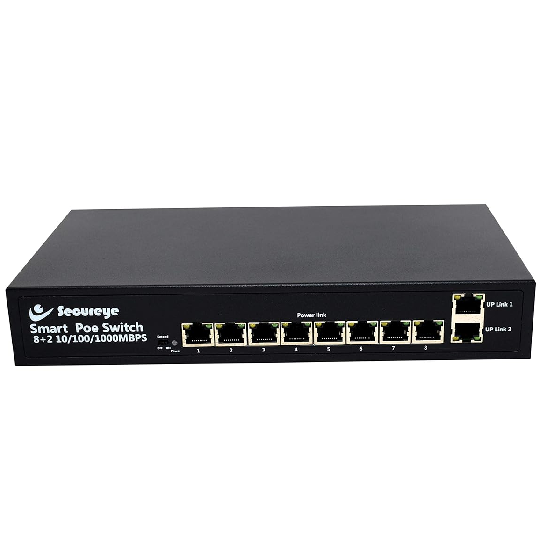 Secureye 8 PoE + 2 Uplink Ports 10/100/1000 Mbps
