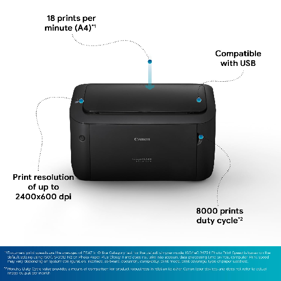 - Printer type: Functions: Print Only ; Printer output: Monochrome ; Connectivity: USB ; Scanner: No ; Scanner resolution: NA