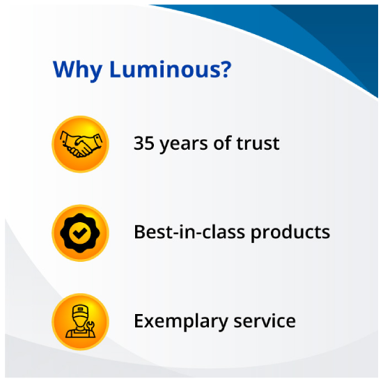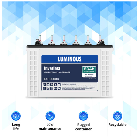 ● Battery with LUMINOUS's well proven "Benchmark of Trust" - Provide long power back-up during power outages